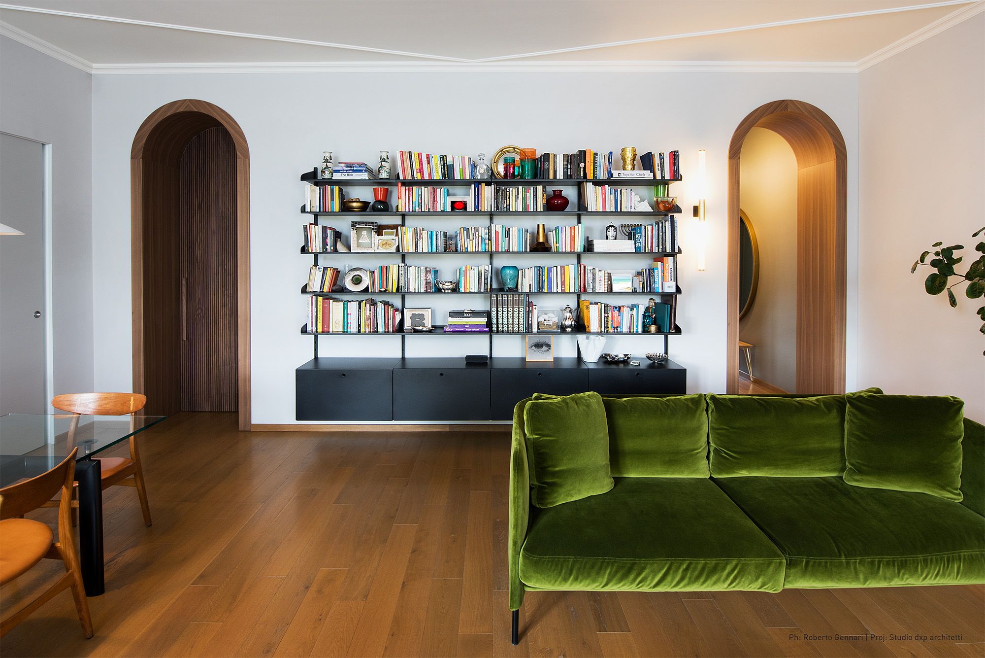 Grazie al sistema a cremagliera, i ripiani possono essere regolati a diverse distanze per collocare sia libri di narrativa che grandi volumi d’arte.